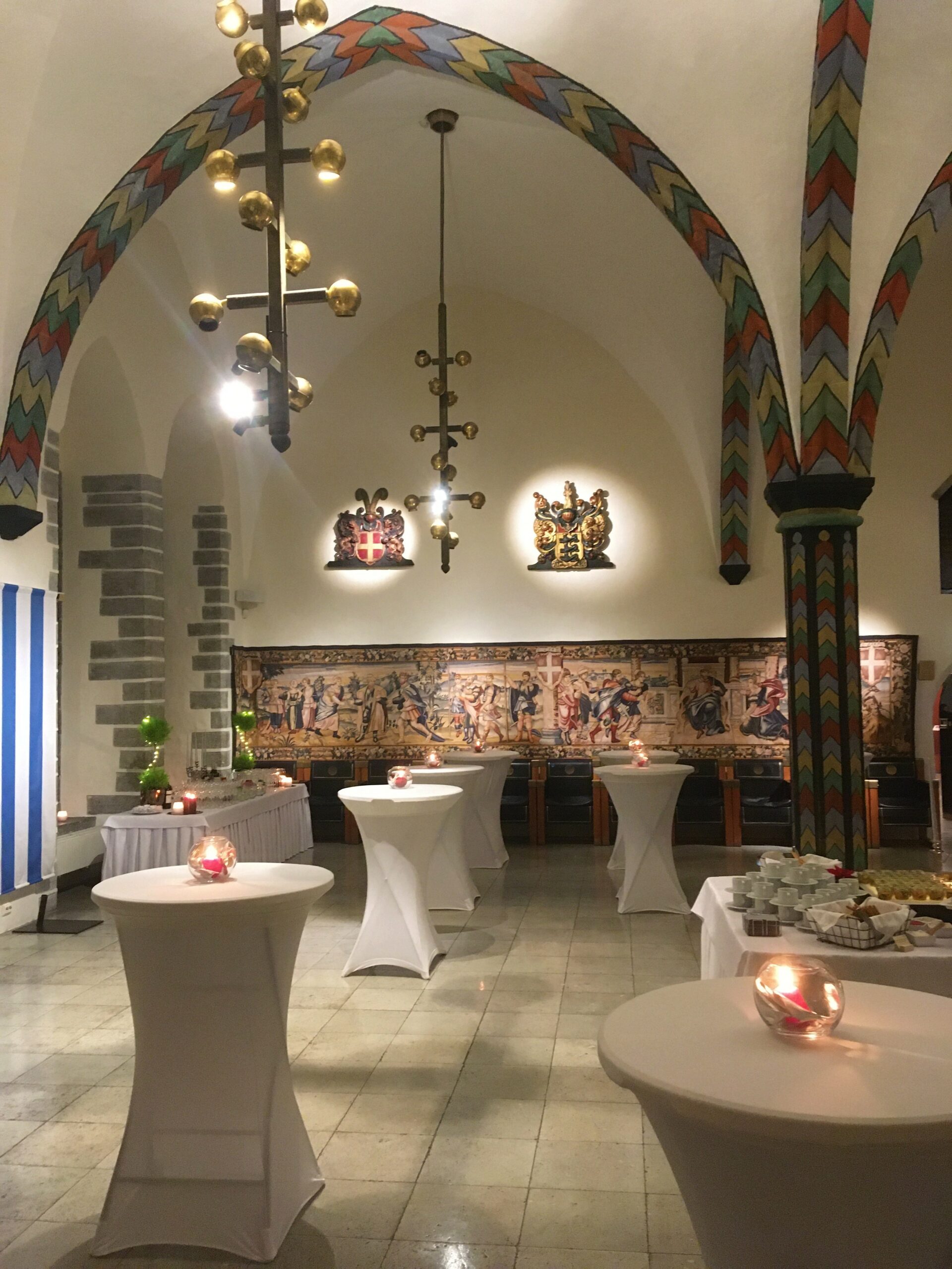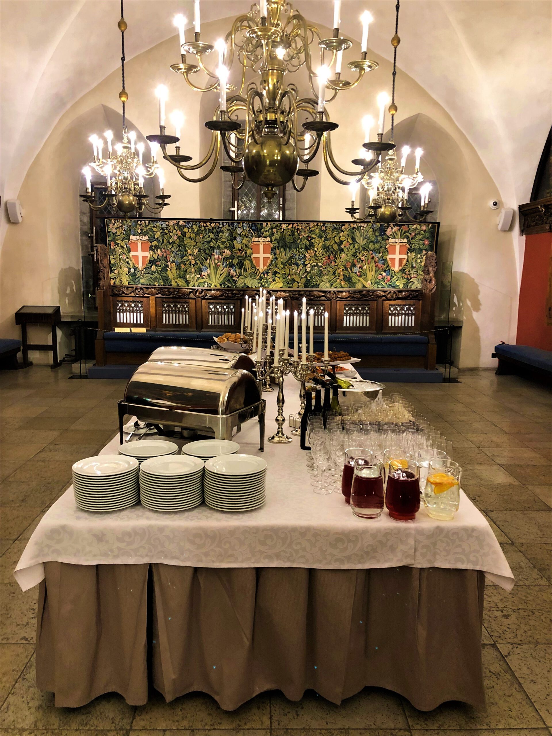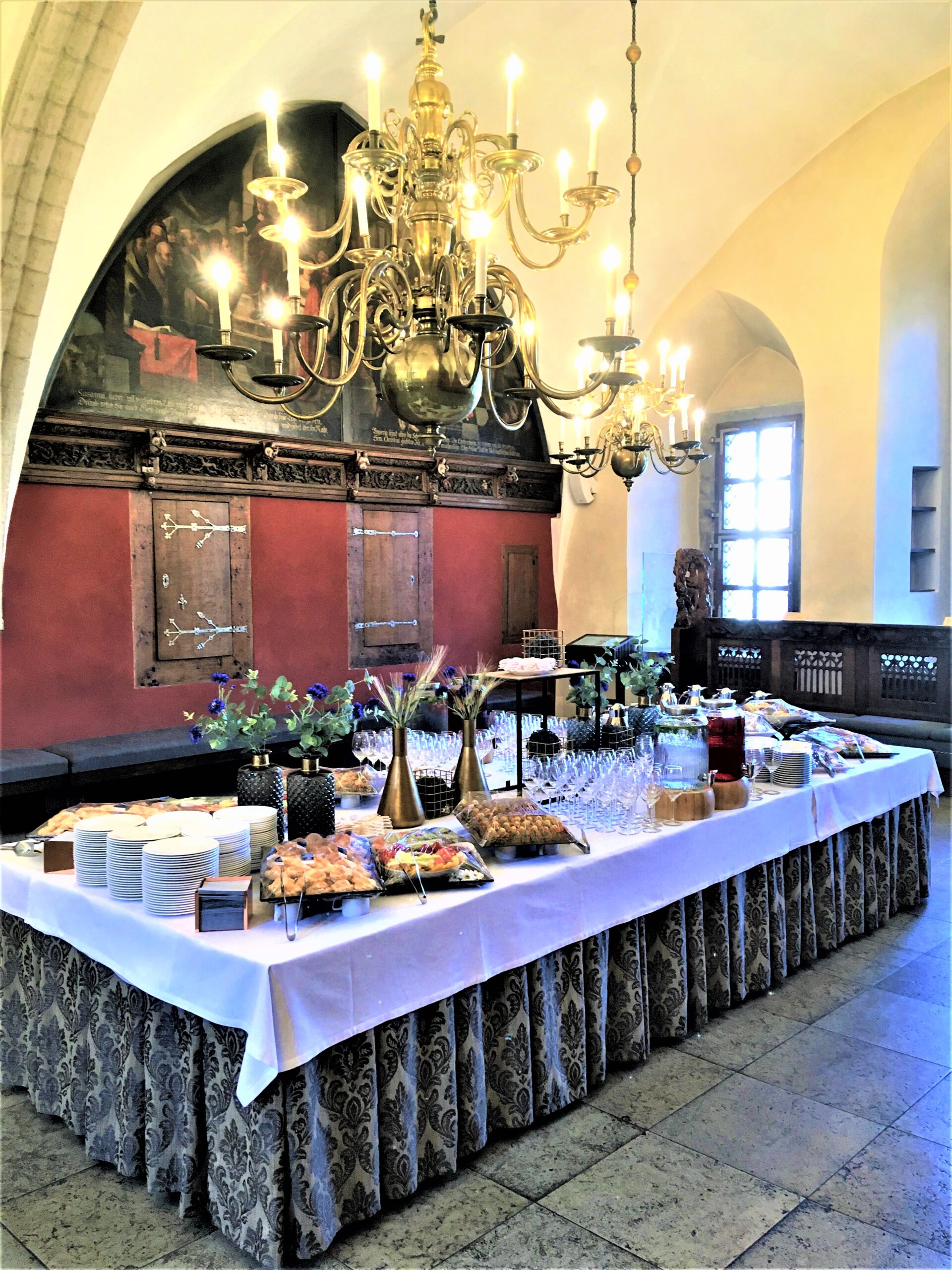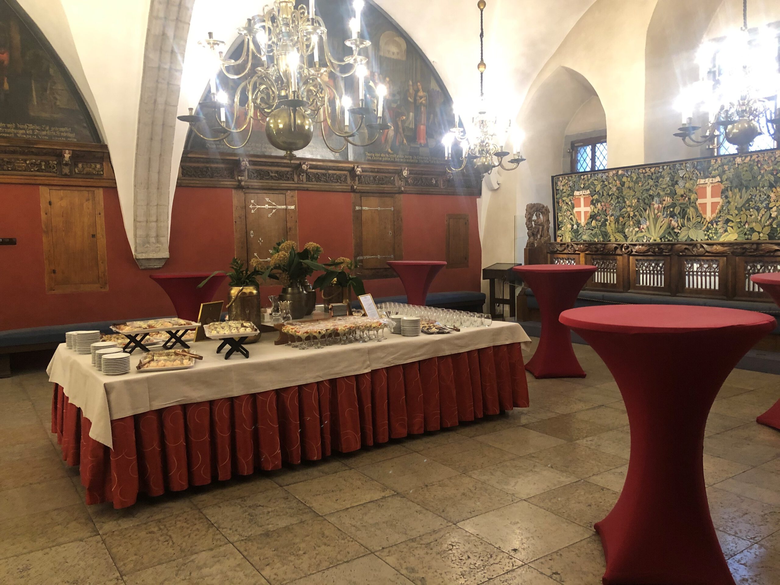 The companies serving in the Town Hall must know the rules applying in the Town Hall. The caterers, who have experience in serving events in the Town Hall and who manage excellently, include: Plus Catering, Fee, Catering Service, Nordic Catering, Caviar Catering, Tervise Catering, Ribe, Põhjala, Astora Catering, Jahh Catering, Menu etc. Other reliable caterers may also be used, provided that they have been agreed with the Town Hall staff beforehand. We recommend visiting the Town Hall with the caterer to be able to agree all the details of the event with us.